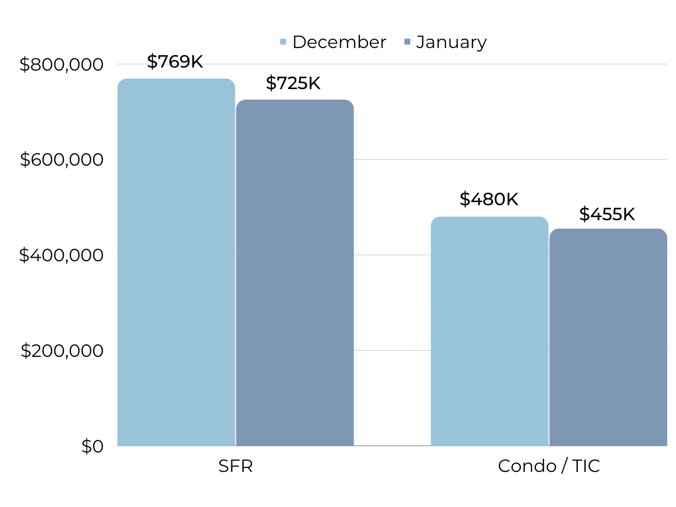 Looking at the “big picture,” we’ve seen some historical movements with some of the sharpest declines in pricing since 2009 and extremely low levels of both overbidding and new inventory. On a national level, it’s expected that prices are to continue on a downward trend, but locally I believe San Francisco and the Bay area has already experienced these declines. The condo market perked up in January, which is highly unusual. Anecdotally speaking, we are seeing an increase in buyer activity with more visitors at open houses, secured pre-approvals, and offers being written. It’s our expectation that we will see rising prices in the Springtime, so If you’d like to start the buying process, now is the time and we can help.