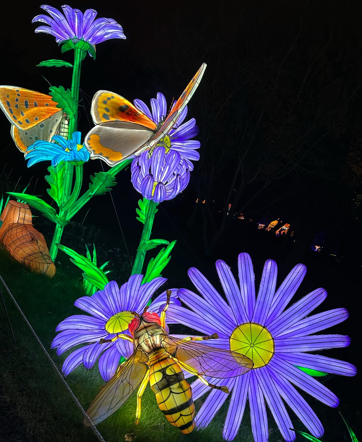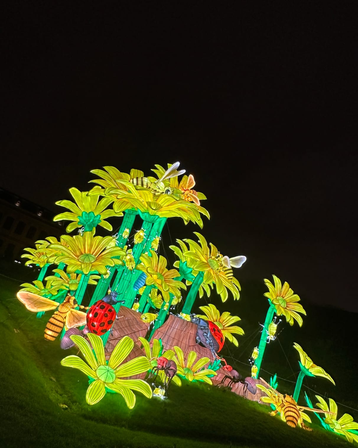 Our trip’s timing serendipitously coincided with the Jardin des plantes Light festival. ‘Mini Worlds Set for Illumination,’ is an awe-inspiring stroll set at night displaying tiny creatures and shaped light structures. It’s filled with colorful artwork and a whimsical world of over 100 illuminated gigantic bugs, insects, and snails (though these ones are not edible like escargot!).