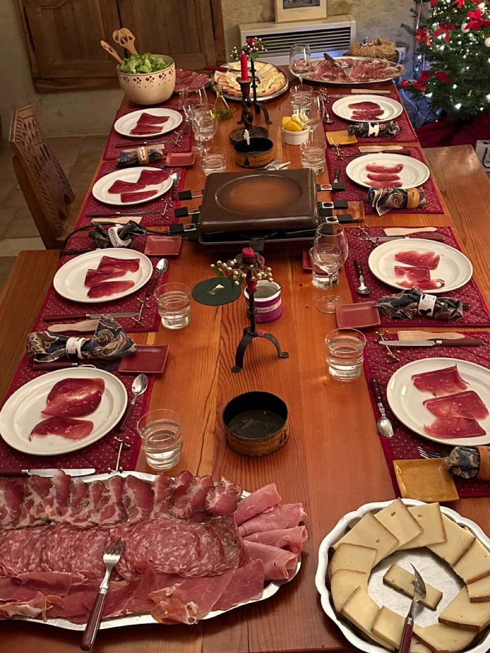 We embarked on our journey by taking the TGV train from Paris to the French Alpes via the Grenoble connection. I can’t speak highly enough about our stay at Le Monêtier-les-Bains, which happens to be Serre Chevalier’s (the ski resort’s) highest village standing at 1,500 m (4921 ft)! It even has two hot water springs for guests to soak in. The resort’s slopes span from 1,200 m (3,940 ft) to 2,800 m (9,190 ft) high, with an option for every ability. We spent 8 days hitting the slopes at Serre Chevalier near the Italian border in the Haute-Alpes, Europe’s largest mountain range. It would not be a trip to the Alpes without highlighting some of the wonderful Alpine dining experiences we were lucky enough to enjoy. Le Peyra Juana is the perfect spot for lunch on a sunny day. I recommend their camembert salad which pairs nicely with a glass of chilled rose. Next, La Cabane, my favorite restaurant experience in Serre Chevalier. Another favorite (it can be hard to choose) is Le pi-Mai, a gem nestled high in the mountains. At home, we prepared savory dinners of cheese fondue, raclette, fondue bourguignonne (red meat paired with red wine), and crepes.